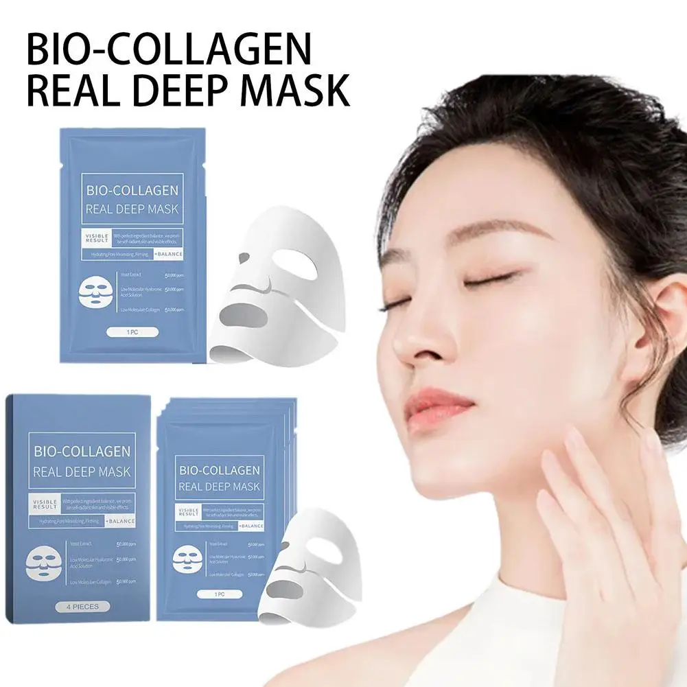 1PC Moisturizing Collagen Mask, Bio-Collagen Deep Rejuvenating Peel Mask, Brightening Films Face Mask Collagen Full Skin of S8A0