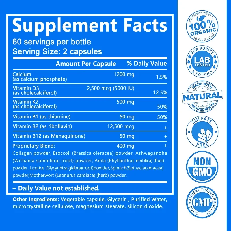 Calcium + D3 + K2 + B12 Capsules - Support Bone and Muscle Health, Replenish Joints