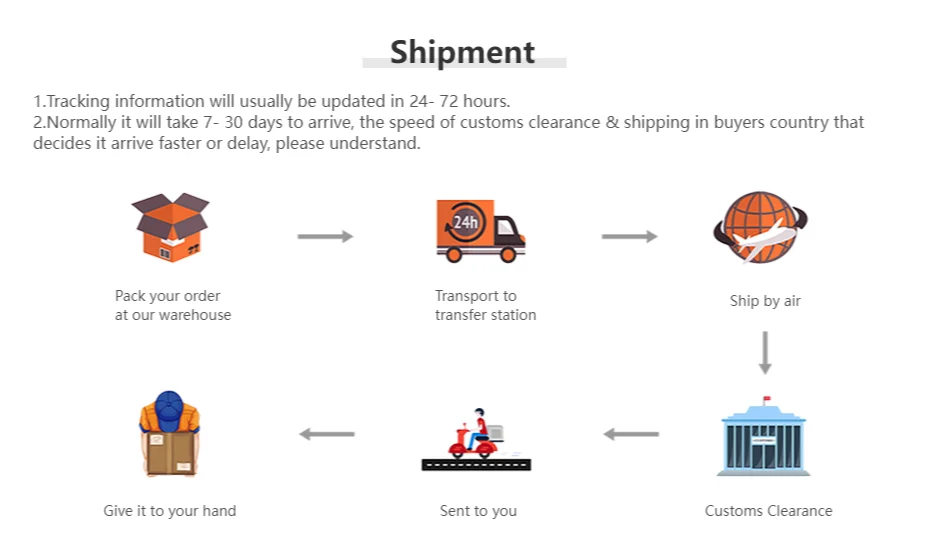 5:We guarantee to send goods out within 48 hours after payment confirmation except holiday.