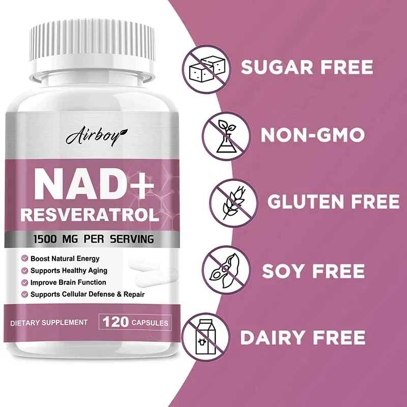 NAD+ Resveratrol Supplements - Natural Energy, Anti-aging and Cellular Health, Strengthens The Immune System