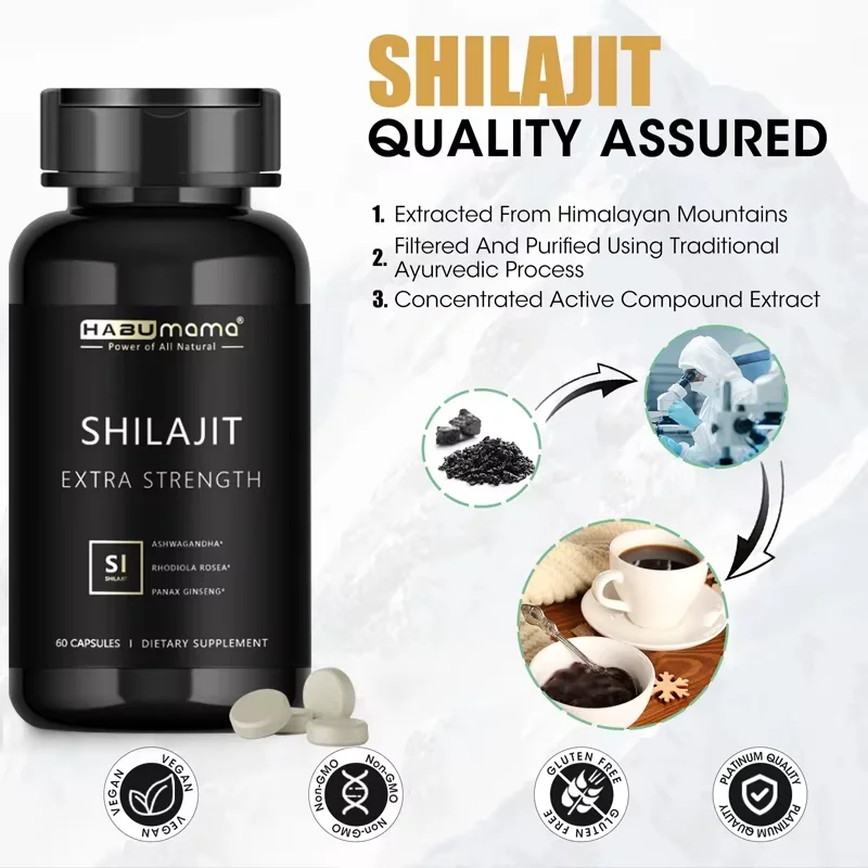 Organic Shilajit for Men | 60 Capsules | Natural Energy + Stamina Booster | Himalayan Mineral Power | Clinically Studied Formula