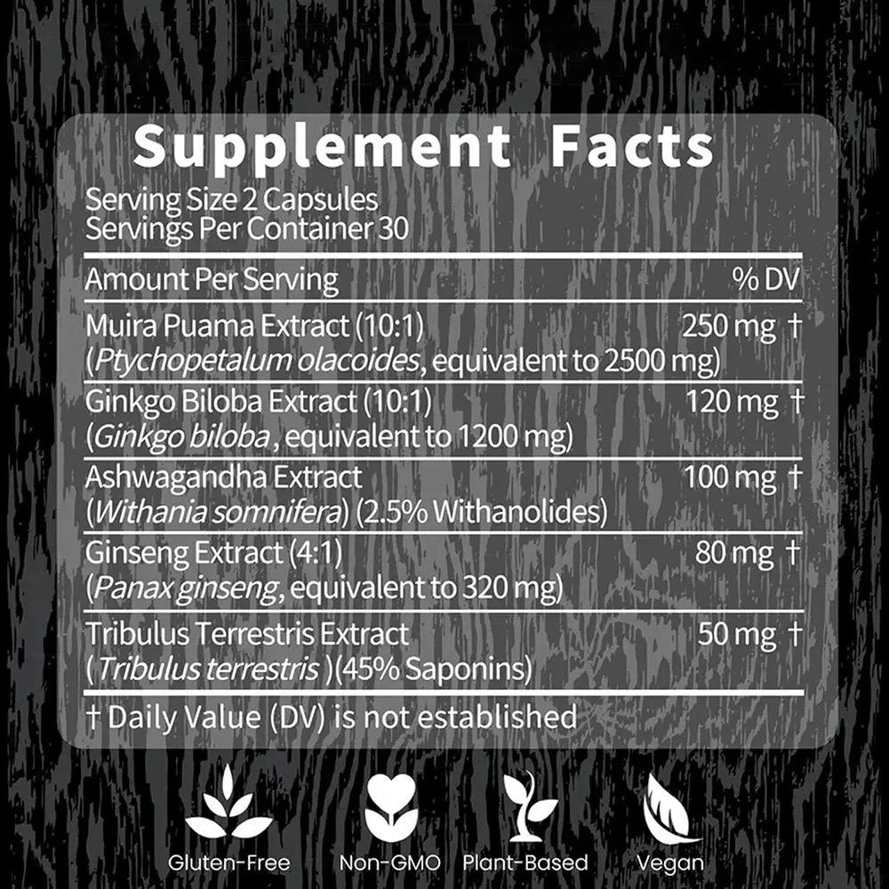 Potency Wood Herbal Supplements with Ginseng Ashwagandha, 60 Capsules, Adaptogen Energy Stamina Immune Antioxidants Gut Health